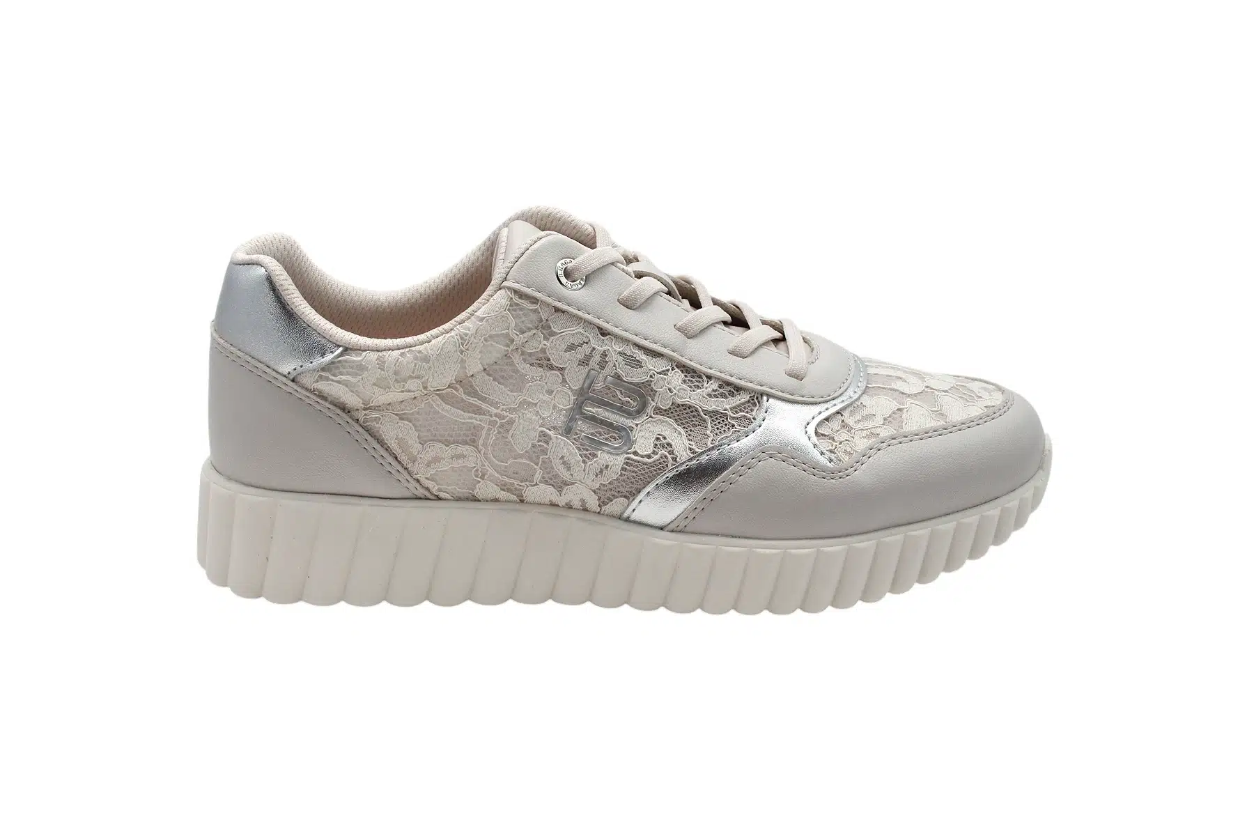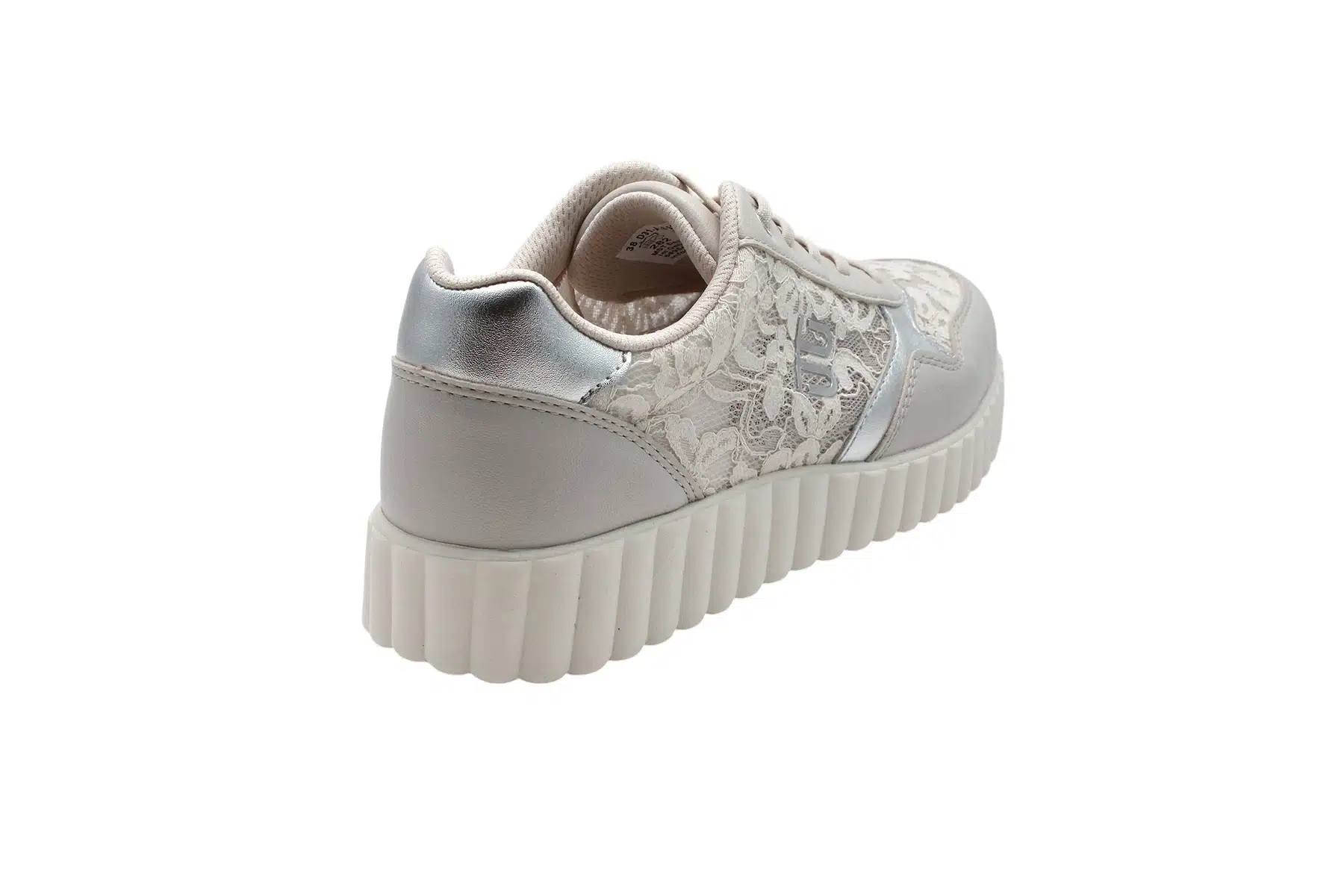 Bagatt női sneaker cipő, divatos megjelenés, ultra könnyű súly a vastagított talp ellenére. A cipő letsztult színvilága egy kis csillogással vegyítve és a csipke szövetnek köszönhetően vonzza a tekinteteket. Sportos de mégis igazán nőies. A cipő talpbetéte kivehet, így annak felülete könnyen tisztántartható, de ha rendelkezel egyedi talpbetéttel akkor azt a gyári helyére behelyezheted.