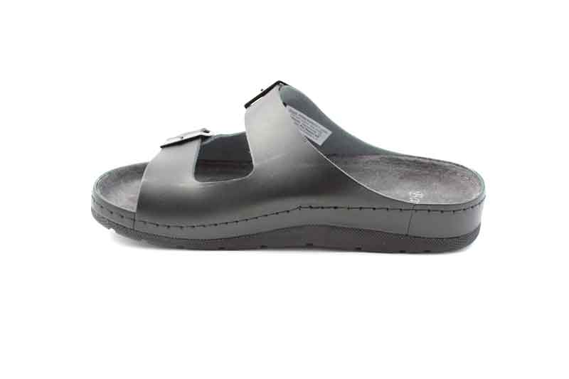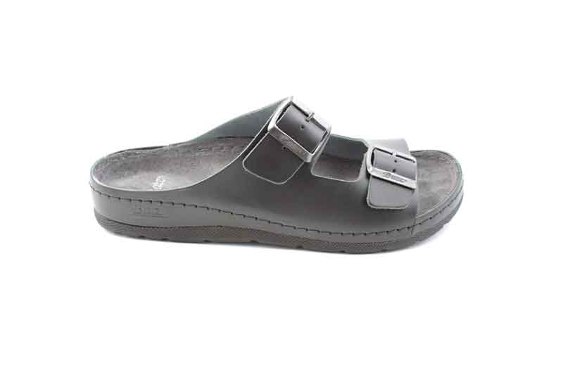 Batz férfi otthoni papucs, két csatos kivitelven és anatómiai alátámasztással. Nagyon kényelmes viseletű férfi papucs amely otthoni de akár utcai viseletre is ideális. A két pánt amely csat segítségével szabályozható lehetőséget biztosít arra, hogy tökéletes lábra illeszkedés legyen elérhető.