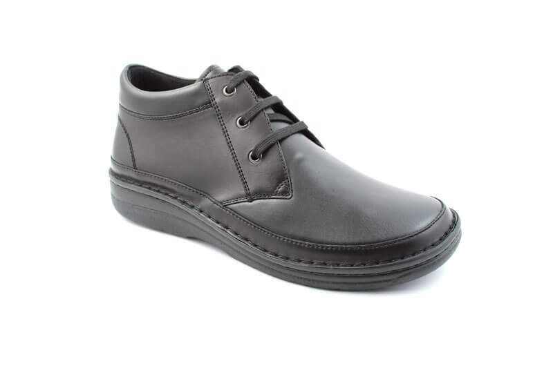 Fekete Berkemann fűzős férfi bokacipő, strech felsőrésszel. Ideális választás erős deformitással – bütyökkel, kalapácsujjal, tyúkszemmel rendelkező urak számára. Ez a Berkemann lábbeli felveszi a láb átlagostól eltérő formáját, a puha és rugalmas stretch anyagnak köszönhetően megkíméli az érzékeny területeket a nyomástól, dörzsöléstől. Anatómiai kialakítású talpbetéttel rendelkezik amely kivehető, cserélhető. A talpbetét külön is megvásárolható, neve: Biel