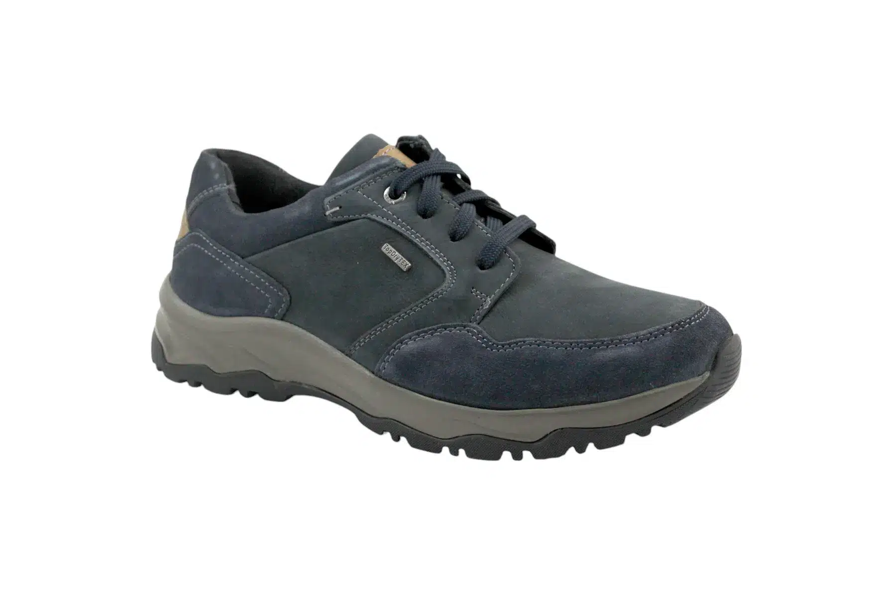 Josef Seibel férfi cipő, sötétkék színben, vízálló TopDryTEX technológiával és kivehető bőrborítású talpbetéttel. Amennyiben az átlagostól kicsit szélesebb talpformával rendelkezel, akkor ez a cipő ideális választás lehet a számodra a komfort „H” bőségméret miatt. Egyedi anatómiai kialakítású talpbetéted van? Semmi gond, a cipő kivehető talpbetéttel rendelkezik, így annak helyére betudod tenni a saját talpbetétedet és nem lesz leszűkítve a cipő belső mérete és marad elegendő hely a lábfej számára.