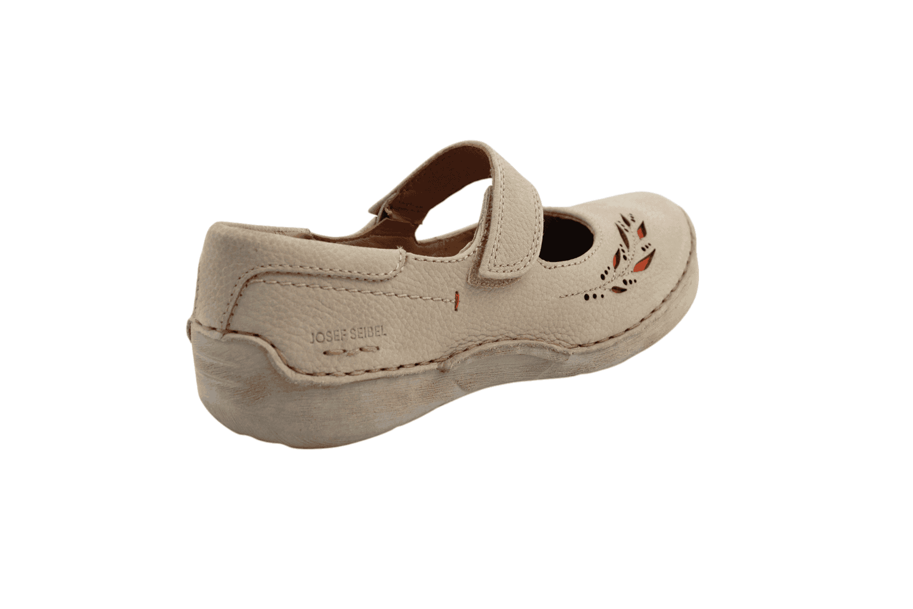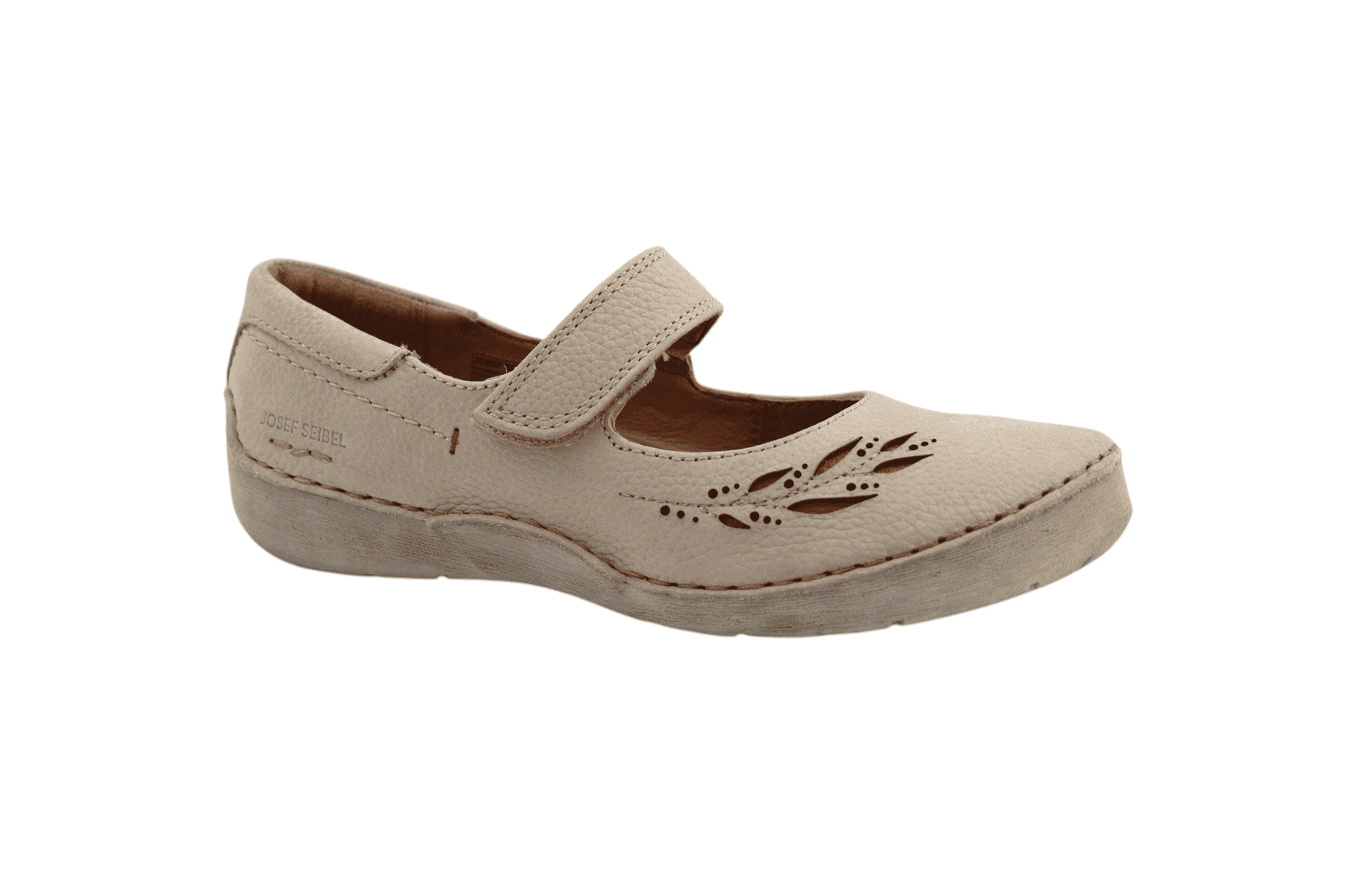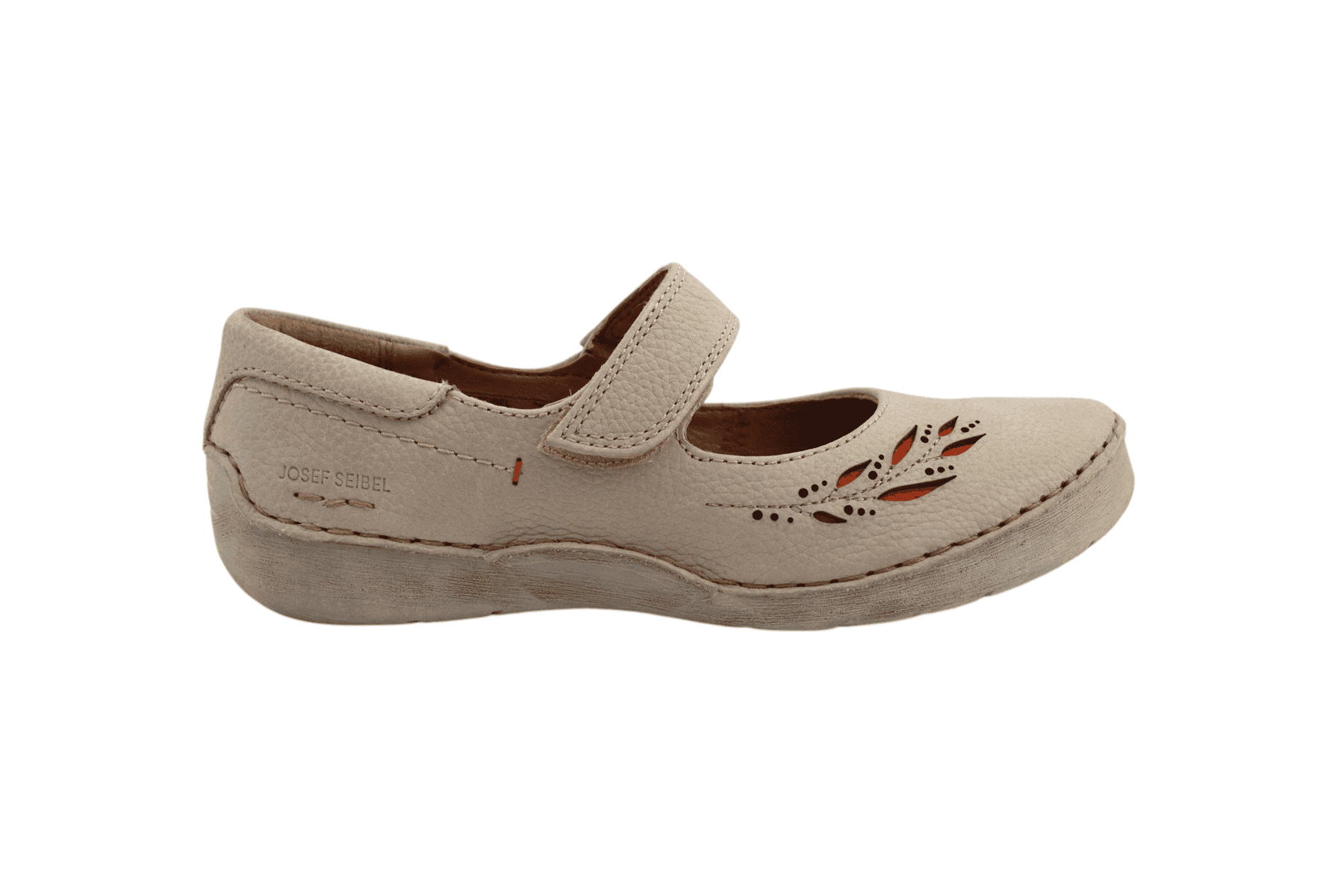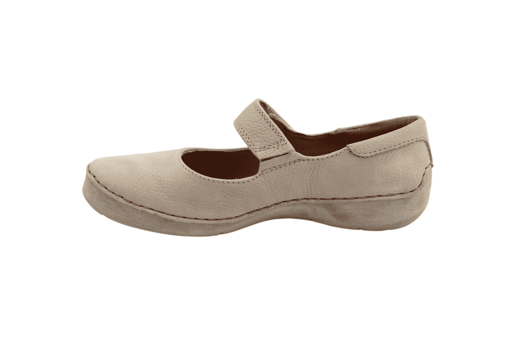 Josef Seibel női pántos cipő, bézs színben, tépőzáras rögzítéssel és kivehető bőrborítású talpbetéttel. Letisztult forma naturisztikus megjelenés, ez jellemzi ezt a Josef Seibel női pántos cipőt. Tavasztól egészen kora őszig viselhető, a megfelelő lábtartásról a tépőzáras pánt gondoskodik. A tépőzáras pánt a cipő belső oldalán egy gumibetéttel rendelkezik, így az átlagostól kicsit magasabb lábfejnél sem okoz problémát, hogy átérjen és rögzíteni lehessen.