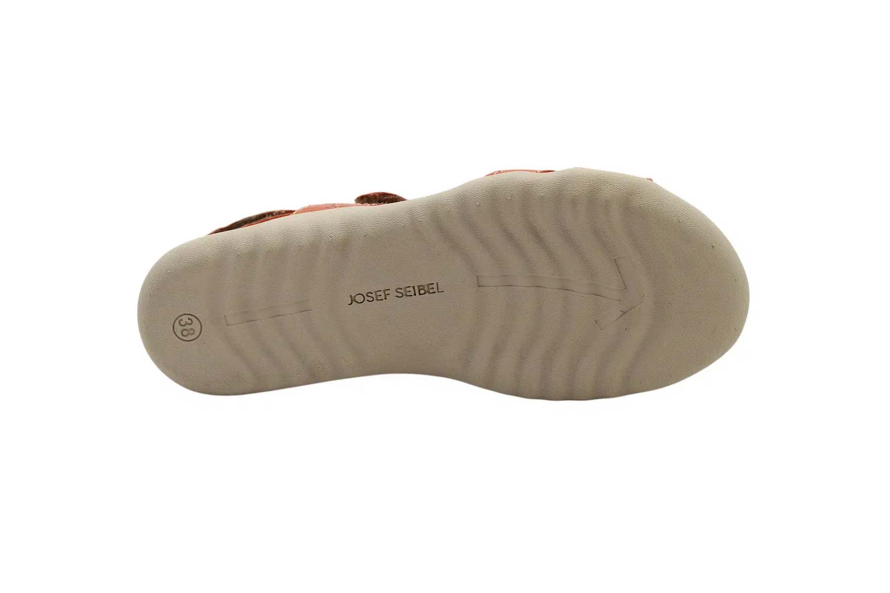 Josef Seibel női nyári utcai szandál, lapos sarokmagasság, nomrál „G” bőségméret. Három ponton tépőzáras állítási lehetőség.