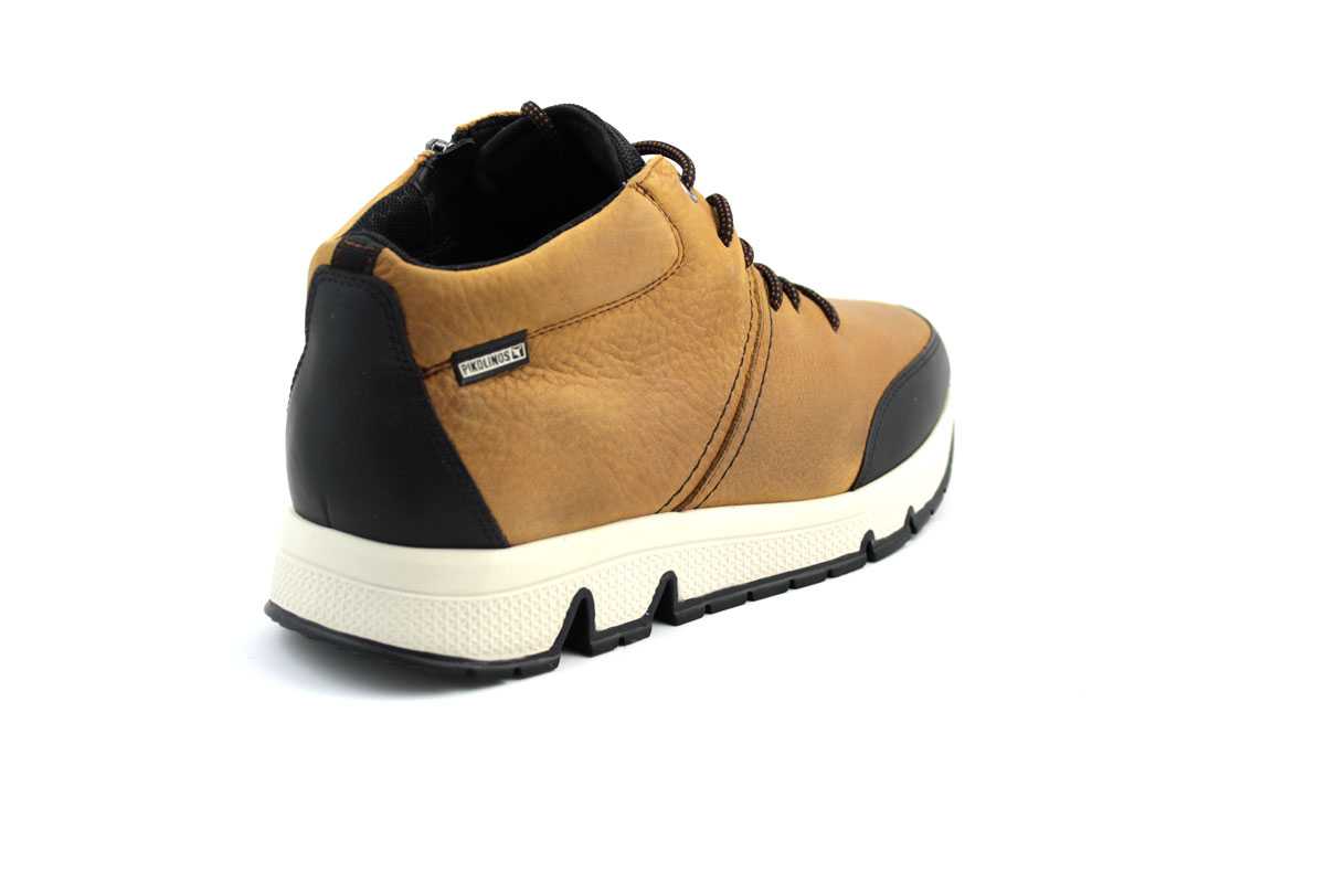 Pikolinos férfi snekaer bokacipő cipőfűzővel és belső oldalán cipzárral. Valódi bőr felsőrésze könnyedén igazodik a viselőjének a lábához. Cipőfűzővel tökéletes lábra illeszkedés és lábtartás biztosítható, a cipzár pedig nagyban könnyíti a gyors fel és levételt. A Pikolinos férfi sneaker bokacipő egy kivehető memóriahabos talpbetéttel rendelkezik, de ez a talpbetét nem egy átlagos memóriahabos talpbetét. A sarok és a hosszirányú boltozat alatt extra alápárnázással rendelkezik a megfelelő lábtartás, illetve a járás során keletkező ütődések tompítása érdekében.