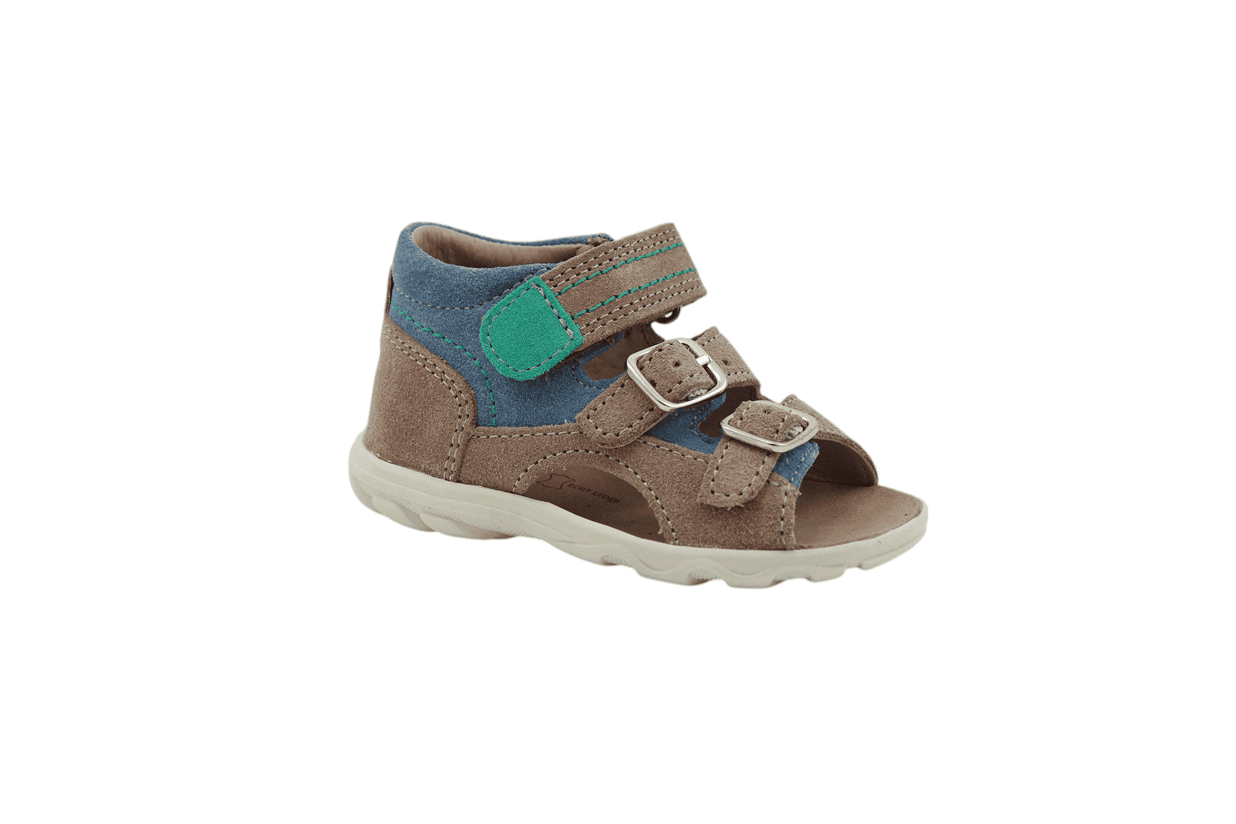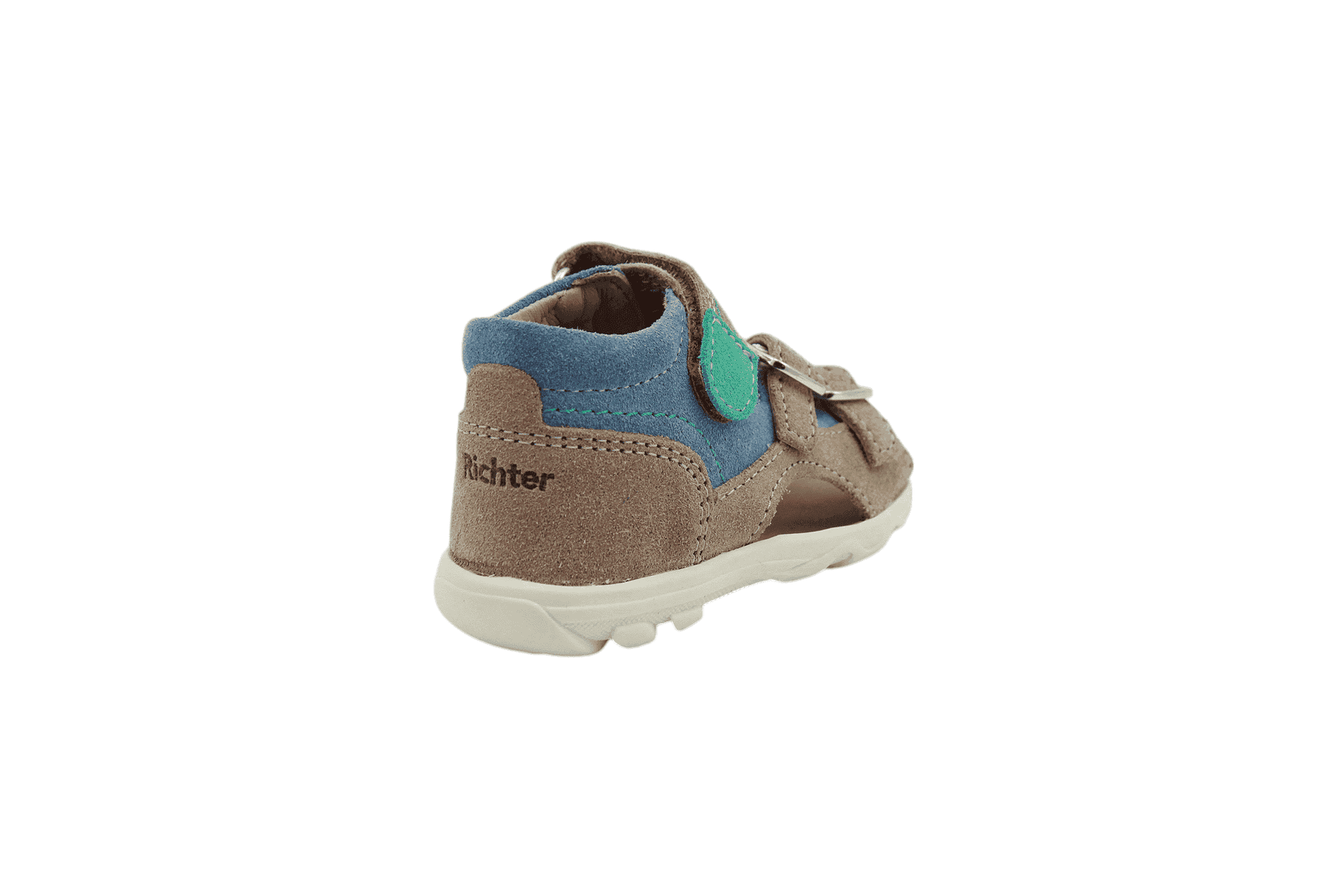Richter kisfiú szandál, nyári utcai viseletre ajánlott. Valódi bőr felsőrésze és bélése magas komfortérzetet biztosít. Az egyenes lábszártartás elősegíti a magasított kéreg amely nem engedi befelé vagy kifelé dőlni a lábat. A megfelelő lábtartást a szandálon lévő három pánt biztosítja, amiből kettő csatos szabályzással, egy pedig tépőzáras rögzítéssel rendelkezik.