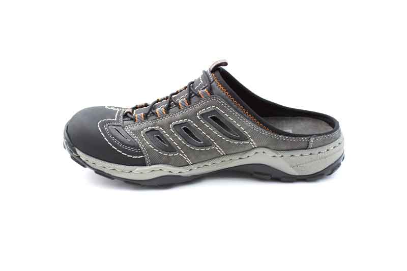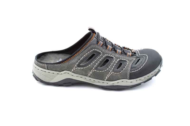 Rieker férfi papucs, klumpa újragondolva. Szintetikus high-tech anyagok felhasználásával készíült papucs amely a nyári hőségben kényelmes viseletet biztosít. Amennyiben kedveli a zárt papucsokat (klumpa) akkor ezt a modellt ajánljuk figyelmébe. A papucs felsőrésze szintetikus szövet ahogy a belső rész is, tiszítása nedves szivacs és cipő shamponnal történhet. Amennyiben az átlagtól nem szélesebb a talpformája és nem magasabb a lábfeje akkor ez a papucs jó választás lehet.