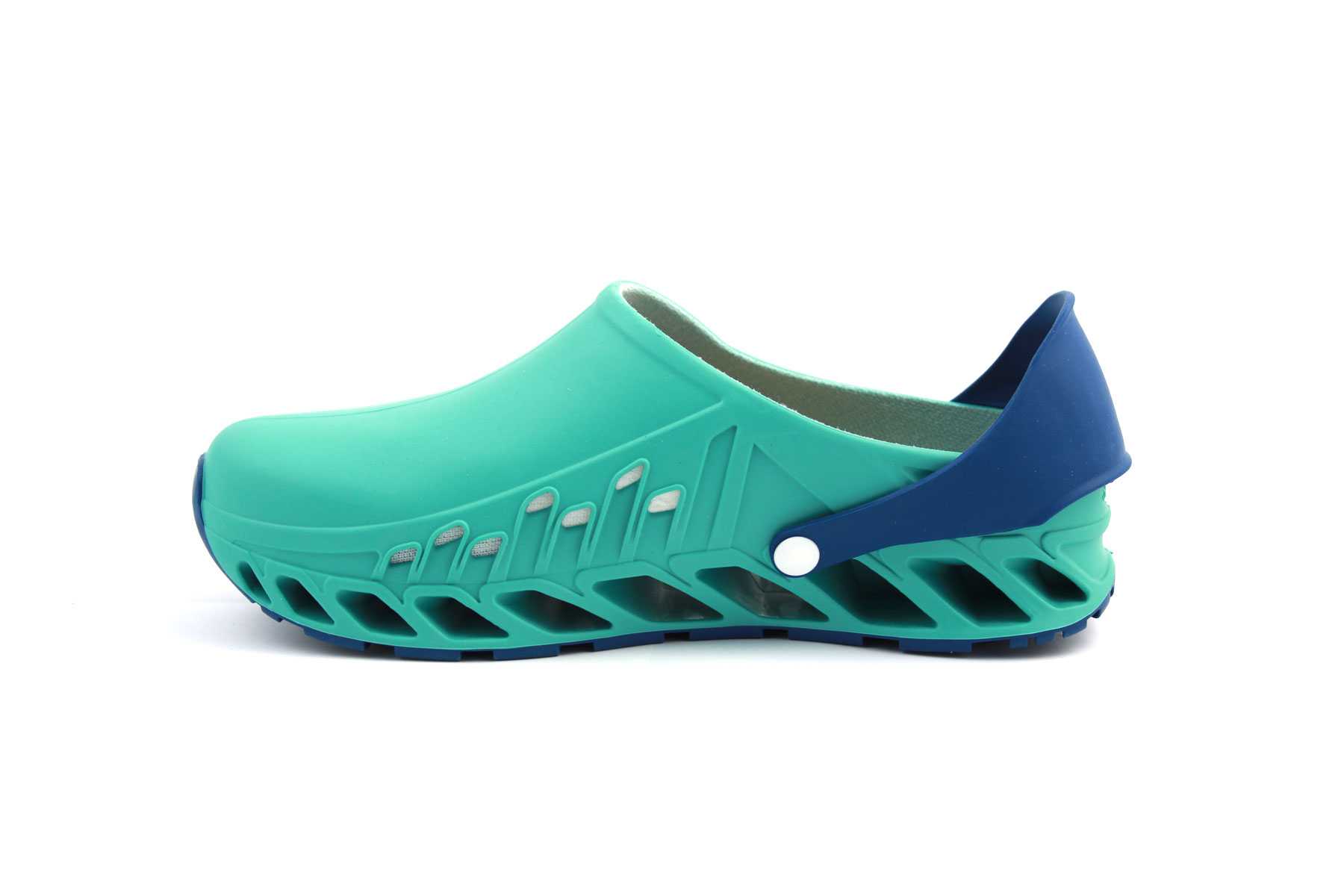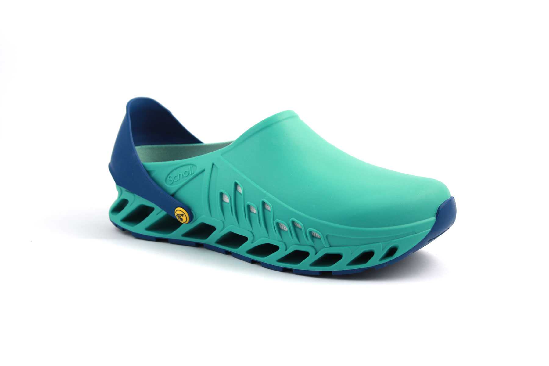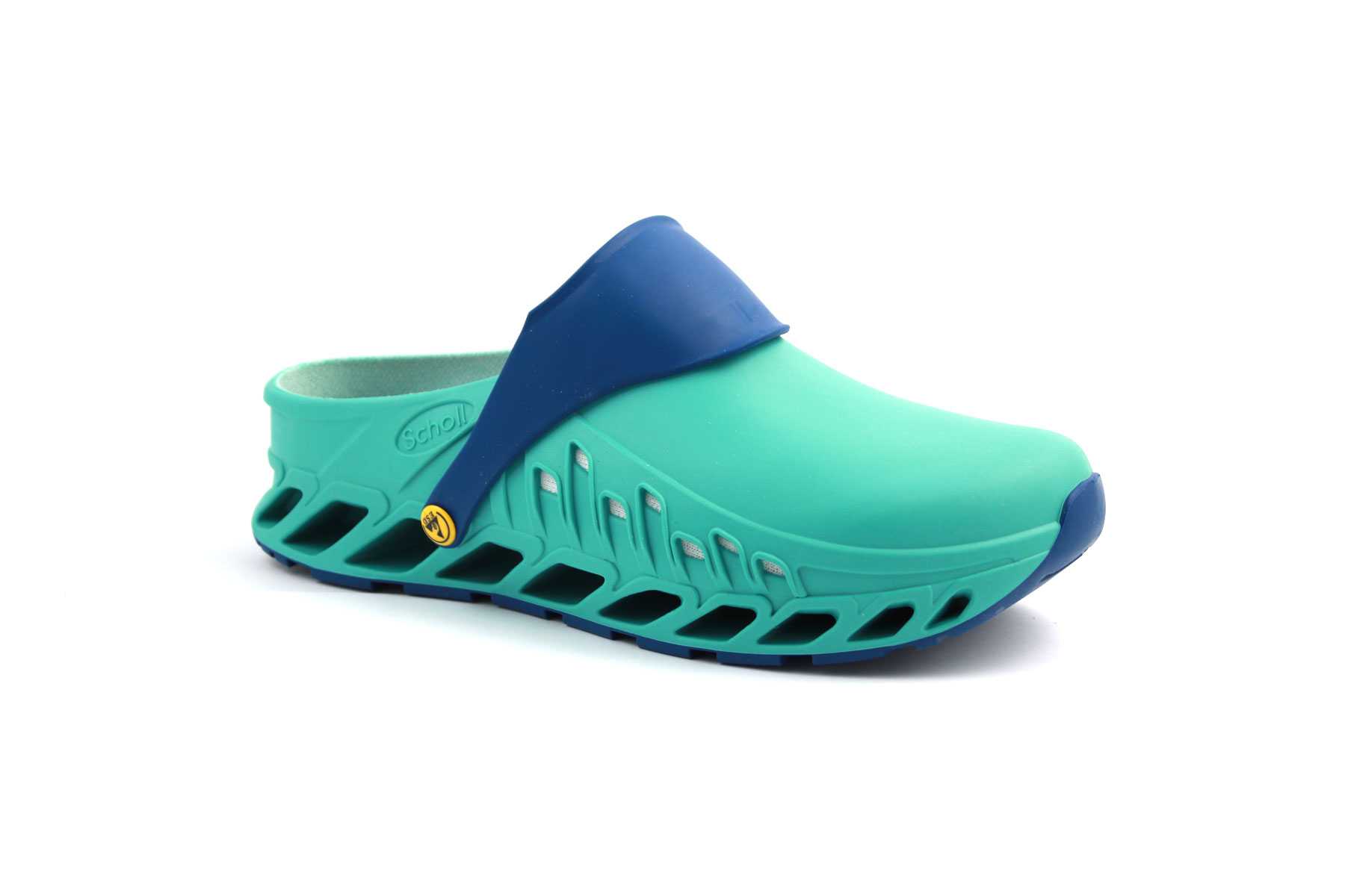 Az EVOFLEX unisex papucsot úgy tervezték, hogy megfelelő viselet legyen akár az egészségügyben történő viselésre is. A papucs felsőrésze sima, így a folyadékot nem szívja magába ezáltal könnyen tisztántartható. A papucs oldala nyitott a megfelelő légáteresztés érdekében. Innovációt is tartalmaz ez a Scholl papucs, a hátsó heveder segítségével a klumpából sneaker cipő alakítható könnyedén. A klupa talpbélése nanotechnológiával került kifejlesztésre ami antibakteriális. Ez a talpbetét Memory Cushion® technológia miatt pihenteti a lábat, a nyomást elosztja a teljes talp felületére. Autoklávozható, antisztatikus, ESD és csúszásgátló kialakítással készült. Ez a Scholl EvoFlex egy II. osztályú egyéni védőeszköz.