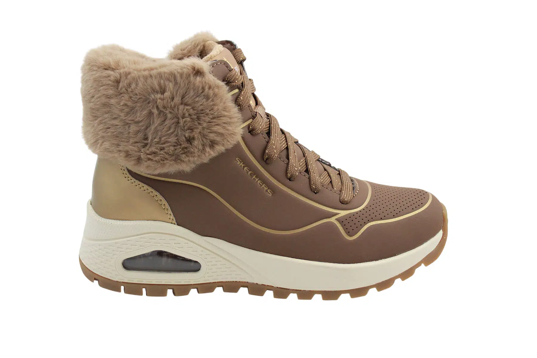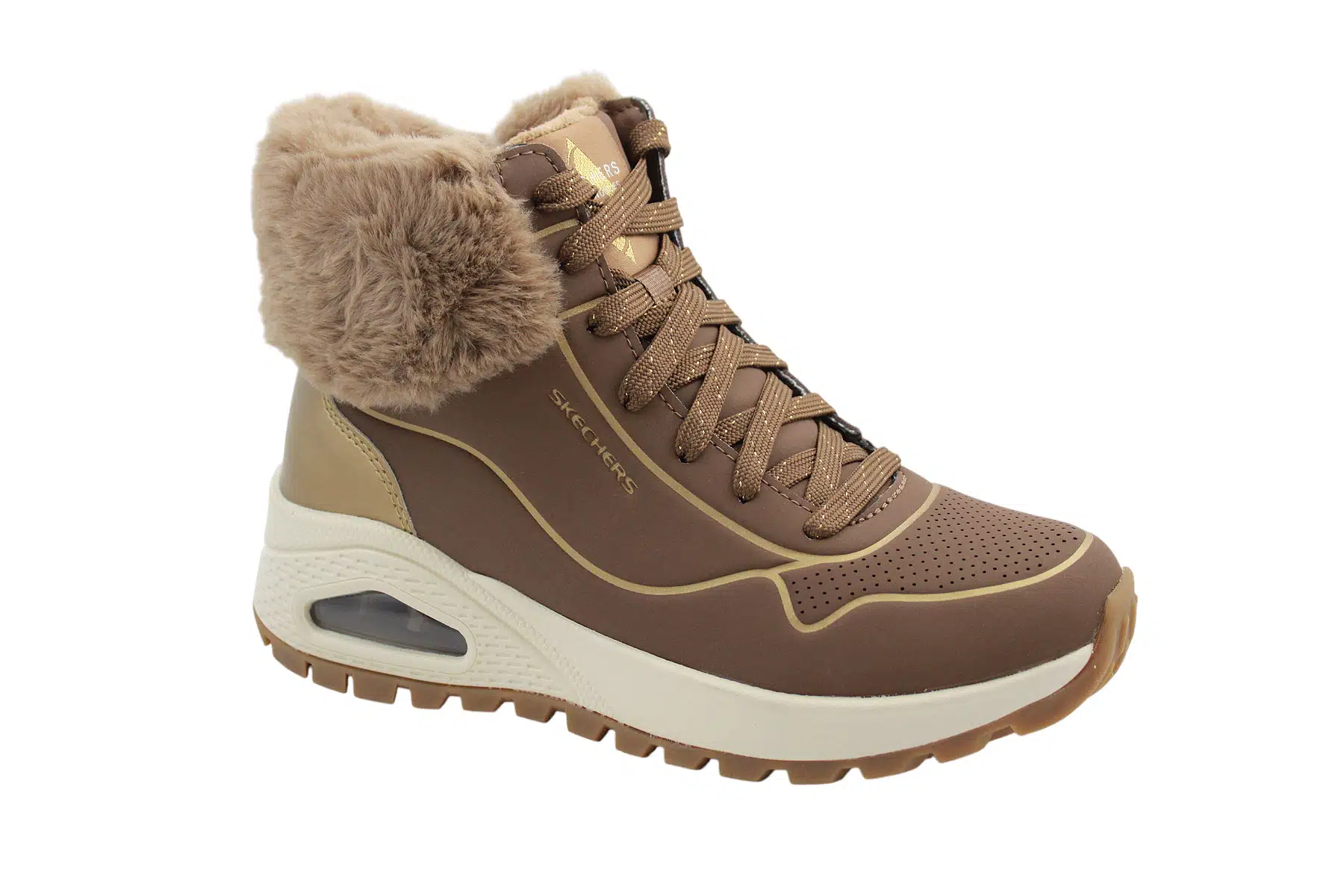 Skechers női sneaker bokacipő, thermo meleg béléssel, Air-Cooled memóriahabos talpbetéttel a magas kényelmi komfort érdekében. A bokacipő belső oldalán lévő cipzárnak köszönhetően rendkívül gyorsan tudod fel és levenni a lábbelit, a cipőfűző használatával tökéletes lábrailleszkedés érhető el és megfelelő lábtartás is biztosítható. Normál „G” bőségmérete van a bokacipőnek ami annyit jelent, hogy az átlagos talpszélességgel és lábfejmagassággal rendelkezők számára ideális választás. A hideg téli napokban sem fog fázni a lábad ebben a sneaker bokacipőben, mert a thermo bélése garantáltan melegen fogja tartani a lábadat.
