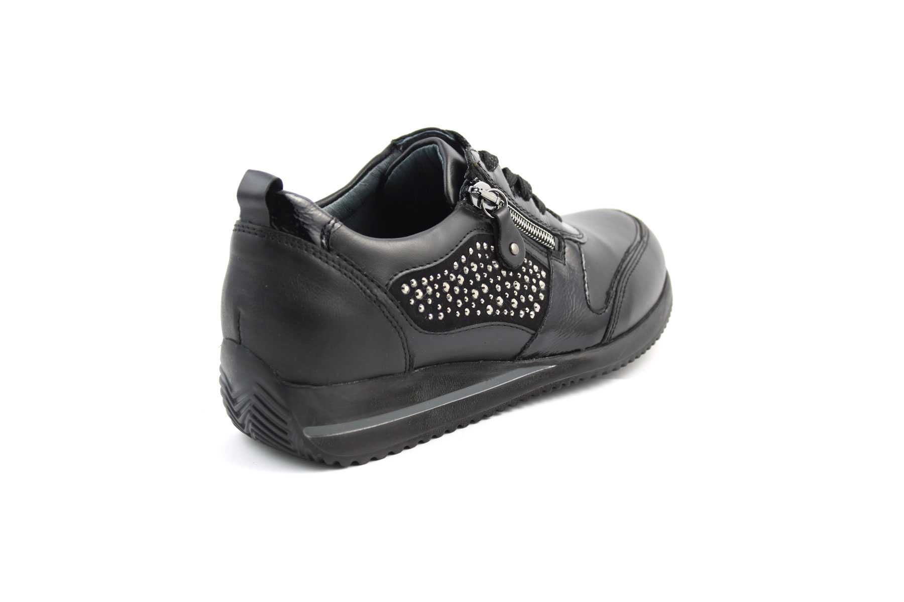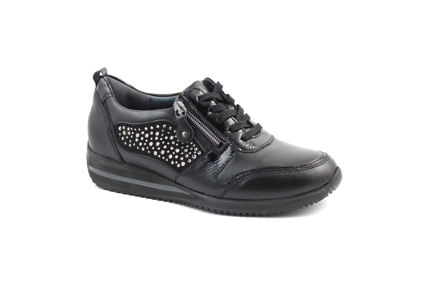 Waldlaufer női cipő (sneaker) ami a tavaszi és őszi időszakra ajánlott viselet. Valódi bőr felsőrésze és bélése rendkívül komfortérzetet biztosít a viselője számára. A cipő kialakítása komfort szélességű „H” így elsősorban az átlagostól szélesebb talpformával és magasabb lábfejjel rendelkezők számára ideális lábbeli. A cipő bőrborítású talpbetéttel rendelkezik ami egy mozdulattal kivehető a cipőből, amennyiben saját anatómiai betéttel rendelkezik, akkor azt a gyári talpbetét helyére helyezze be. Cipőfűzővel és cipzárral rendelkezik, a cipőfűzőnek köszönhetően tökéletesen lábfejhez szabályozható és megfelelő lábtartás érhető el. A cipzár használatával a fel és levétel rendkívül gyorsan és egyszerűen történhet.