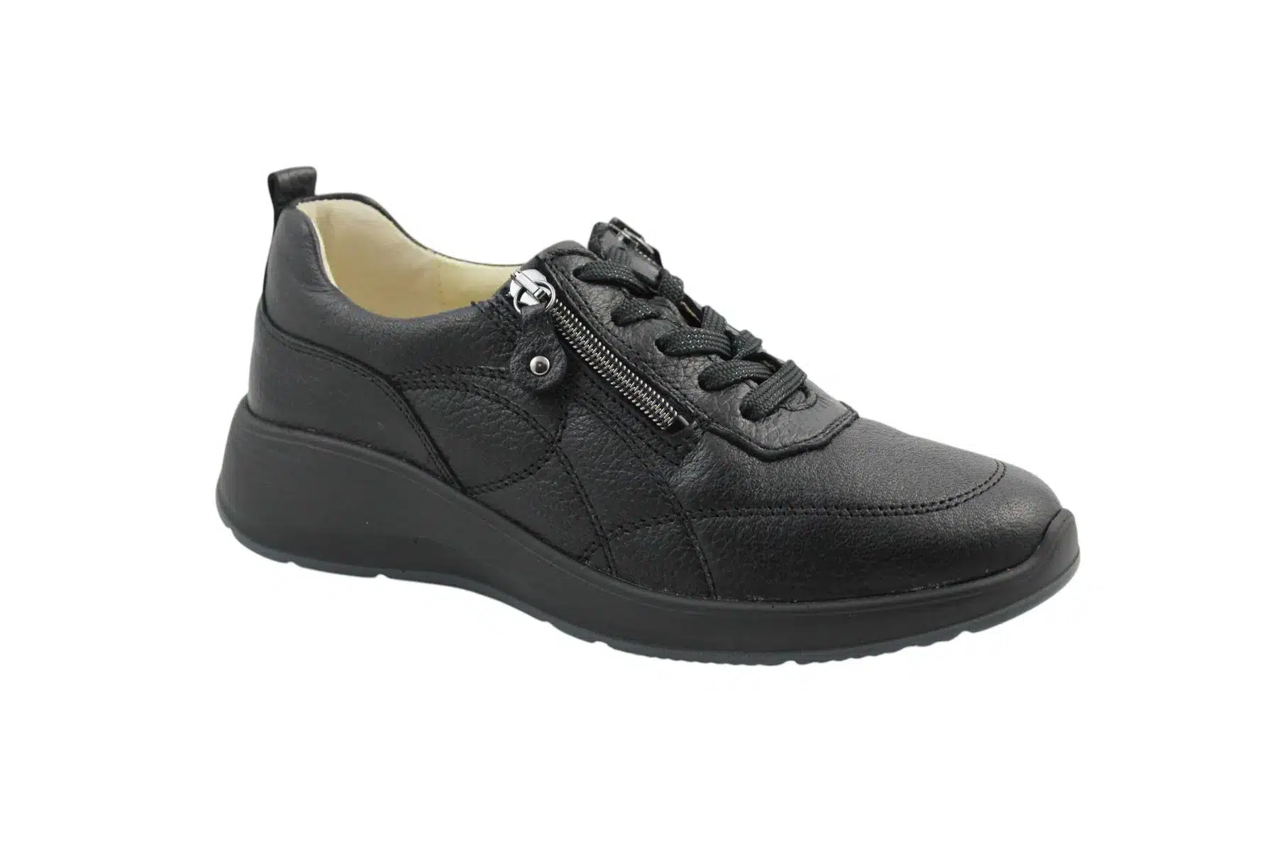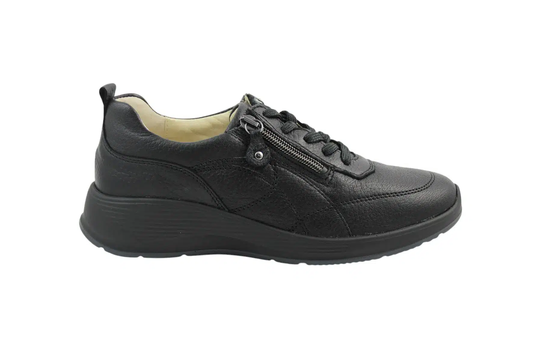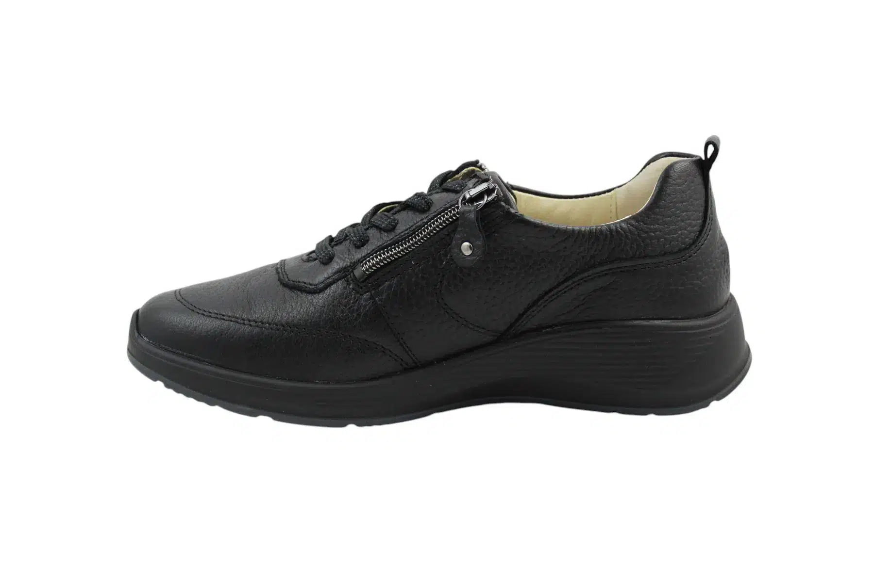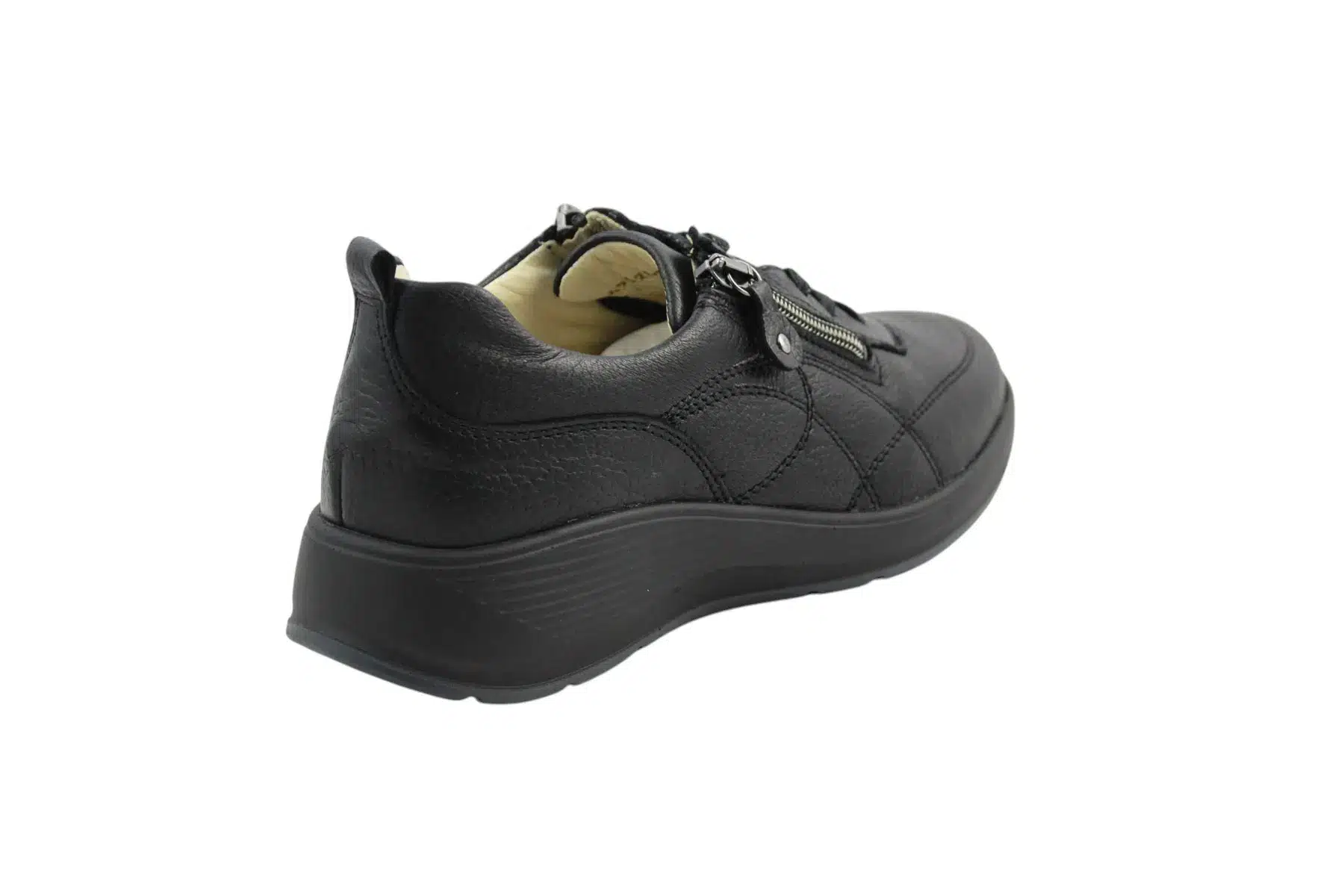 Waldlaufer női sneaker cipő, rendkívűl puha szarvasbőr felsőrésszel rendelkezik. A cipő „K” bőségmérete annyit jelent, hogy a valóban nagyon széles talpformával és magas lábfejjel rendelkezők számára ideális választás. A fel és levétel nagyban megkönnyíti a cipő külső és belső oldalán elhelyezett cipzár, a megfelelő lábtartásról a cipőfűzővel lehet gondoskodni. A cipő kivehető talpbetéttel rendelkezik, amennyiben van egyedi talpbetéted akkor azt a gyári betét helyére behelyezheted.